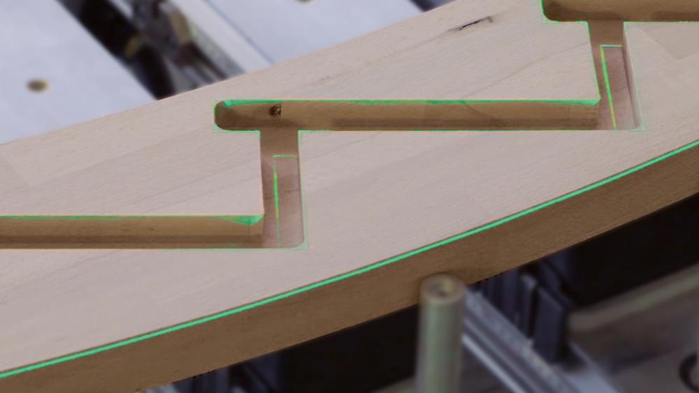Kontúrový laser – projektuje celý obrys dielca ako aj všetky potrebné vákuové odsávania a pozície konzol bez obmedzenia počtu projektovaných línií.