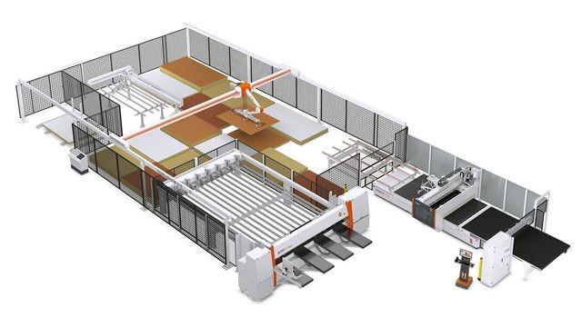 HOLZ-HER STORE-MASTER skladové riešenie pre maximálny výkon s pílou a nestingom vrátane automatického označovania dielcov štítkami (labeling).
